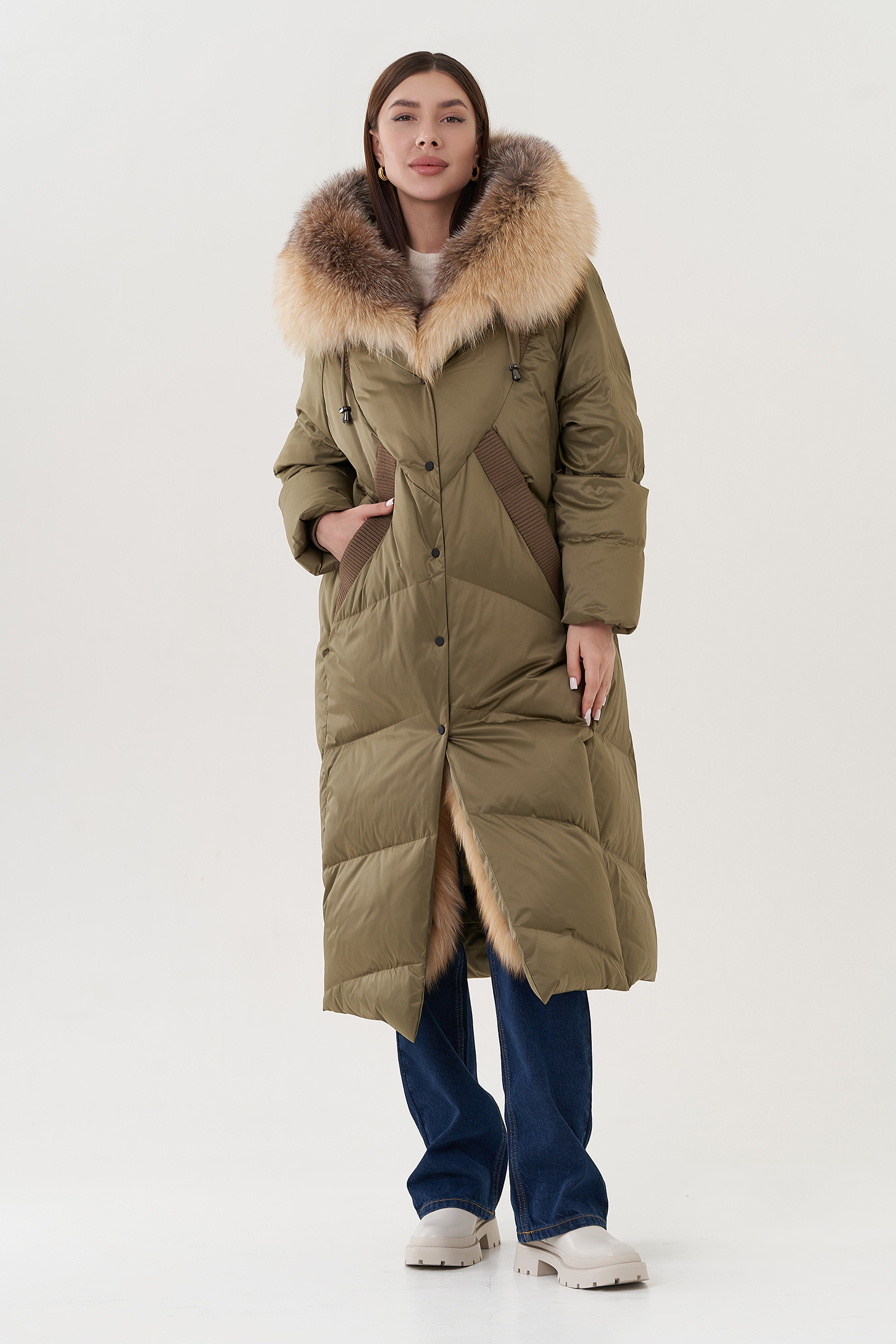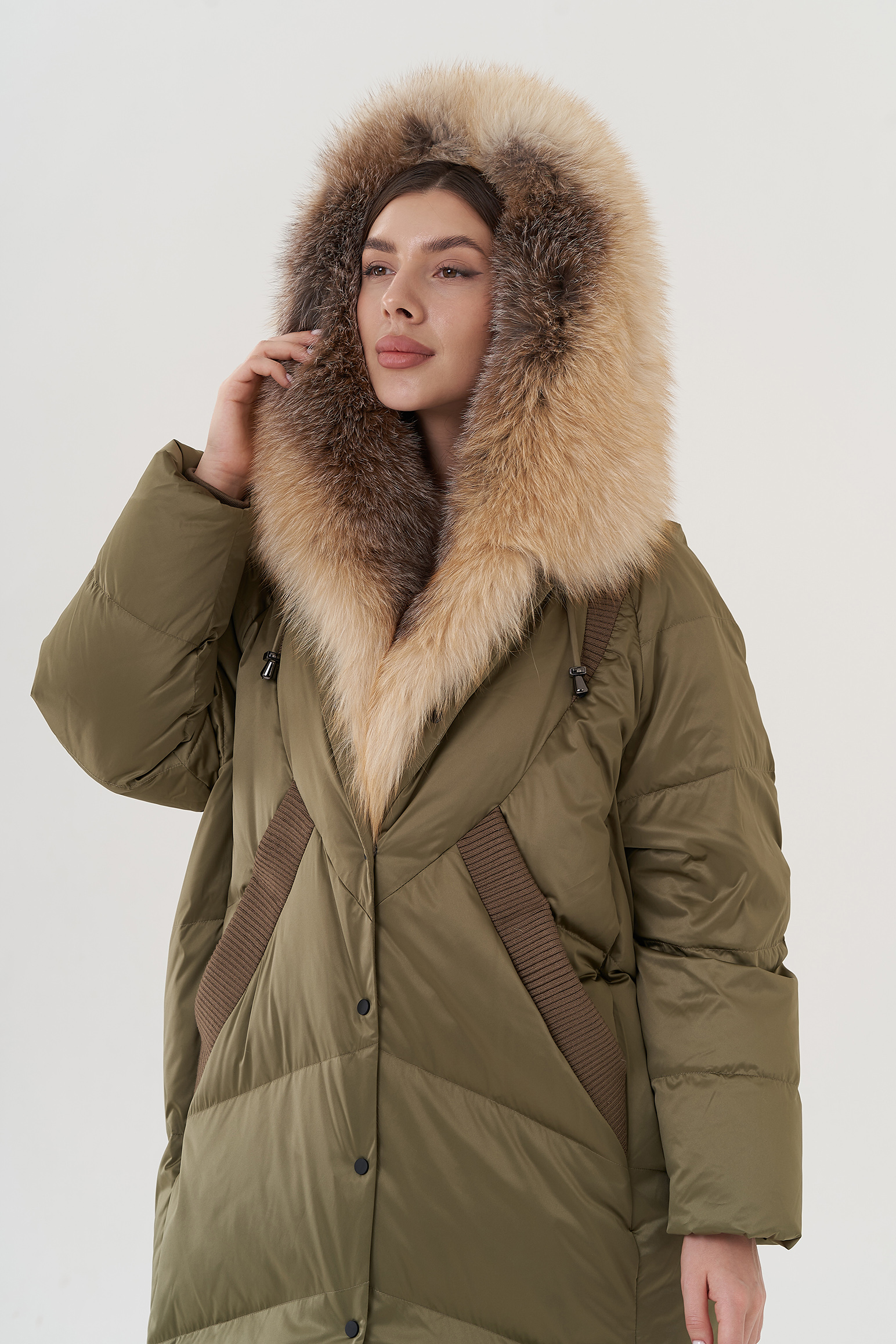 Крой воротника - капюшон, отделка лиса