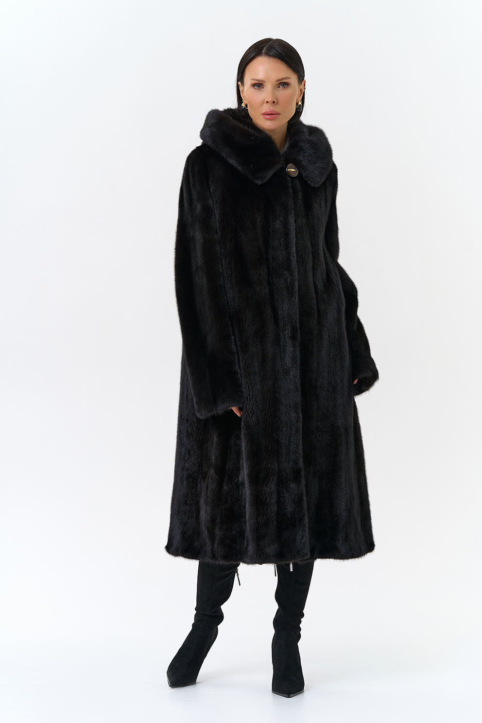 Шуба из норки с капюшоном